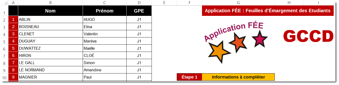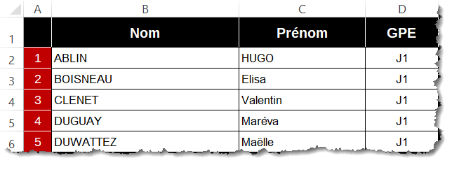 1/ On copie/colle la liste des étudiants et des groupes de TP :