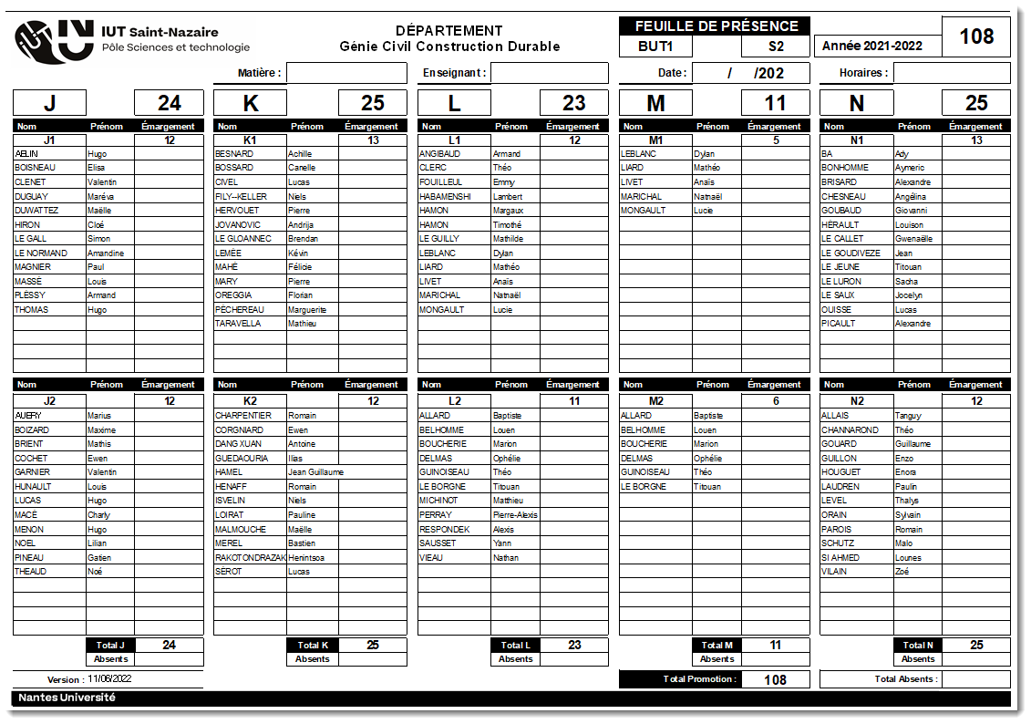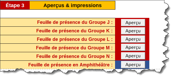 4/ On imprime les feuilles de présence par groupe ainsi que la feuille de présence pour la promotion toute entière :