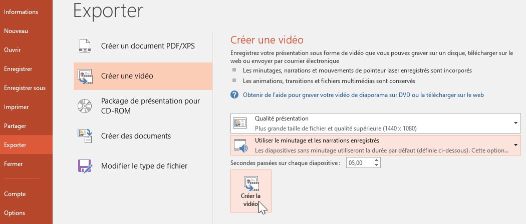 Vous trouverez davantage d'explications sur l'enregistrement d'un diaporama avec Power Point sur cette page Microsoft.